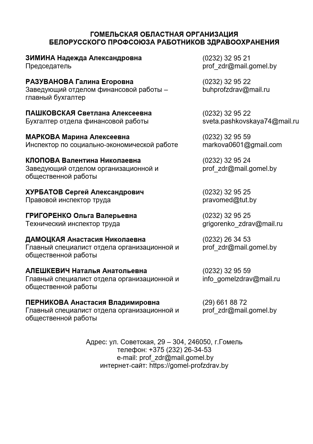 г. Гомель, ул. Советская, 29, 246050, факс: +375 (232) 32 95 24